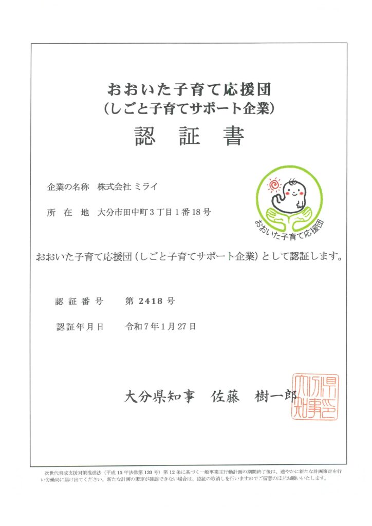 現在は大分市内で保育事業・介護事業・教育福祉事業を展開しており、今後も各事業での新規出店の計画が進んでおります。