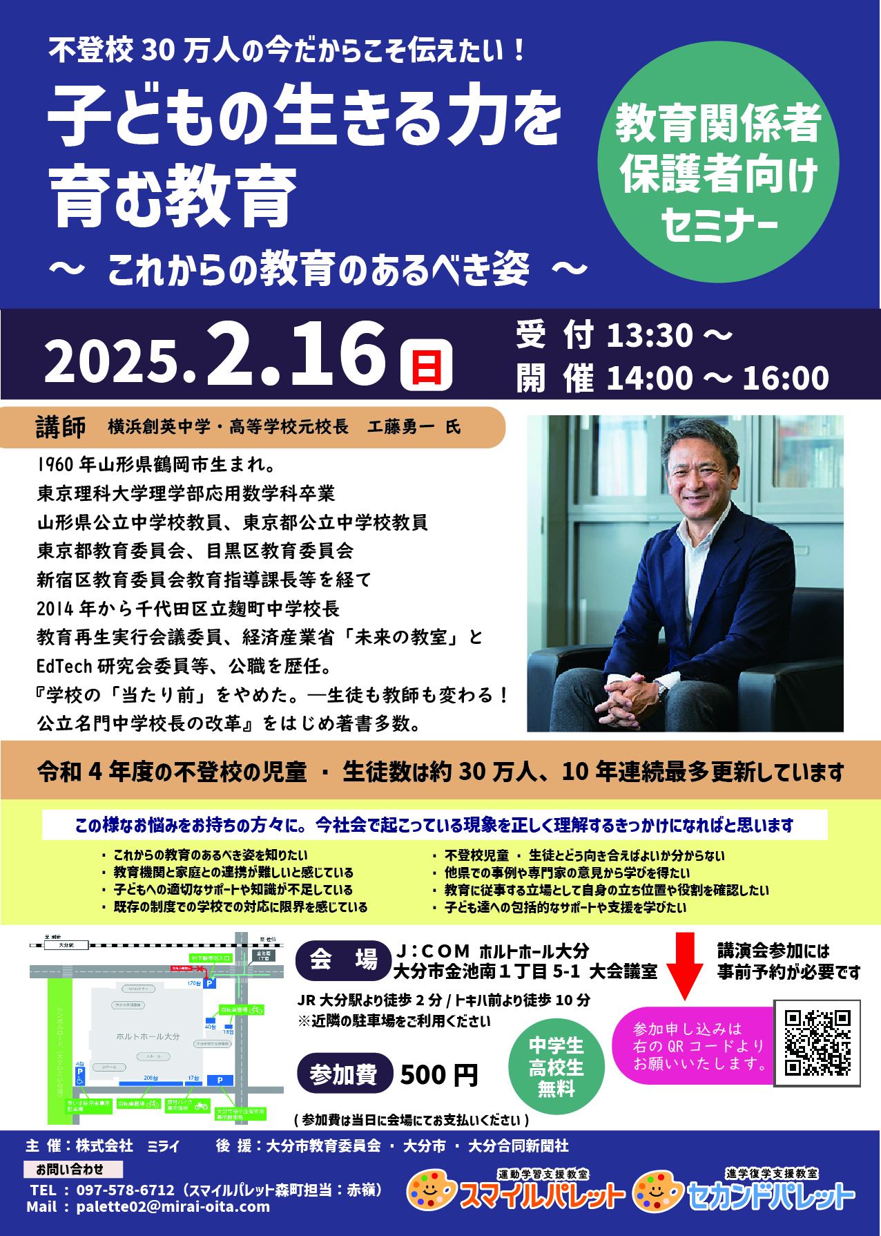 講師に 工藤勇一氏をお招きして 2025/2/16(日)14:00 開催 受付13:30より