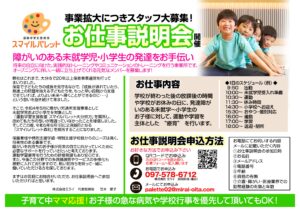 6月にオープンしたばかりのスマイルパレット森町ですが、事業拡大につきスタッフを大募集致します。