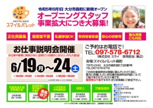 6/19(月)~24(土)の期間中、お仕事説明会を実施いたしますので、ぜひ参加下さい!